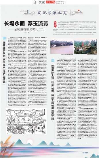 “余杭治苕溪史略记”专栏,带读者回顾苕溪治水历程中那些劈波斩浪、开渠筑堤的瞬间,探寻余杭人民如何在与自然的博弈中汲取智慧,并将这份智慧薪火相传,书写与水共生共荣的壮美篇章。