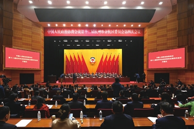 区政协主席沈昱代表政协第十二届杭州市余杭区委员会常务委员会,向大会报告工作。