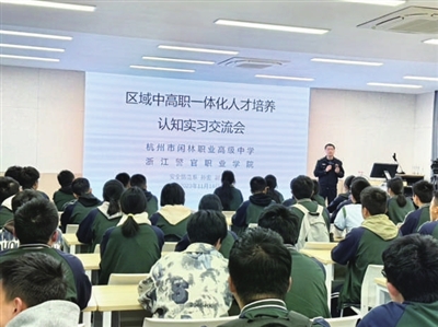2008年以前,职业教育几乎是“断头教育”,中职生升学率仅占毕业生总数的5%左右。如今的职业教育“升学立交桥”越建越畅通:2023年,杭州中高职一体化五年制职业教育招生同比增长26.66%。这意味着学生通过五年一体化学习就可以拿到大专毕业文凭。这样的利好还将持续发酵,2023年,闲林职高中高职一体化招生人数约占当年学校总招生规模的57%,大大拓宽了学生的升学通道。