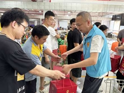 车间职工是产业发展的贡献者。慰问队伍走进各类高温作业企业的生产车间,把清凉物资送到产业工人的手中。同时,区总工会也积极与企业沟通,建议合理调整工时、配备防暑药品,确保职工健康获得有效保障。