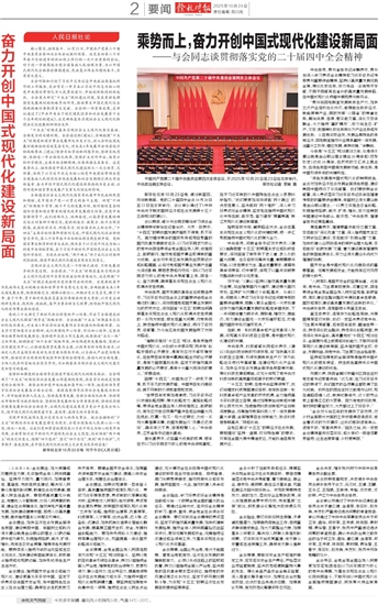 新华社北京10月23日电 中国共产党第二十届中央委员会第四次全体会议公报