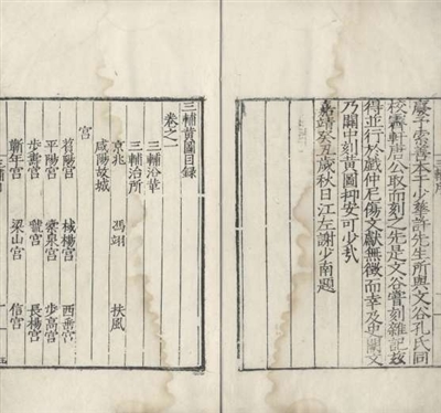 | 《三辅黄图》六卷 (入选《国家珍贵古籍名录》,编号:04216) 明嘉靖三十二年(1553)唐时英刻本 《三辅黄图》主要记述秦汉时期咸阳、长安地区的城垣、宫殿、门阙、楼观、街市、池苑等名胜古迹,并详加考述,是研究秦汉历史的珍贵资料。 此本目录前有谢少南刻本序一则,详述版本来源。据序文可知,该书原为许少华旧藏,后经谢少南、孔文谷二人校正,交由唐时英付梓刊行。此本印刷字体方正严谨,仿宋风格显著,纸张洁白细腻,是嘉靖本中的精品。 |