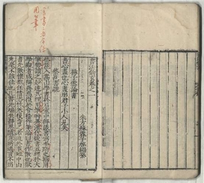 | 《书法钩玄》四卷 (入选《国家珍贵古籍名录》,编号:04671) 明嘉靖三十六年(1557)严嵩刻本 《书法钩玄》为元代学者苏霖编辑的书论汇编,收录扬子云书论、卫夫人笔阵图、王右军论书、欧阳询书三十六法、孙过庭书谱、李阳冰论古篆、苏东坡书说、永字八法、刘须溪评书等历代书论共六十五篇。 该书为明代嘉靖朝内阁首辅严嵩所刻,严嵩曾刻书近二十种,除其自撰文集以外,还有唐代郑谷《云台编》、元代苏霖《书法钩玄》等。 |