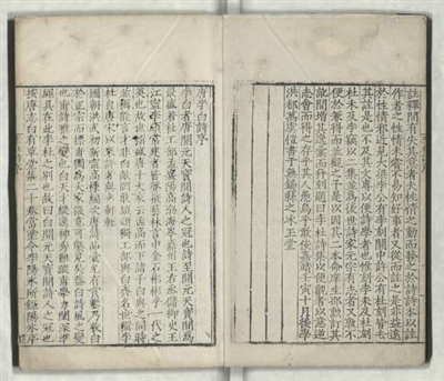 | 《唐李杜诗集》十六卷 (入选《国家珍贵古籍名录》,编号:06455) 明嘉靖二十一年(1542)万虞恺刻本 明代邵勋编纂的李白、杜甫诗歌总集,成书于嘉靖二十一年(1542),经万虞恺命邵勋校订增补后合并刊行。全书共收录李白、杜甫诗作各八卷,合计十六卷。明代弘治以来,出现了以“前后七子”为代表的文学复古运动,其主张“文必秦汉,诗必盛唐”,李、杜二人被奉为宗匠,至嘉靖、万历年间,大量李白、杜甫的诗歌选集出版。 万虞恺在《刻李杜诗集序》中云:“唐诗名家以十数称,大家则惟李、杜齐名,冠绝一代。”全书采用分体分类的编排方式,虽分类标准存在争议,但便于读者对照研习,反映了当时士子学诗的习尚。 |