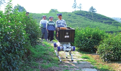 在径山五峰茶厂数字化车间,杭州申昊科技研发的智能搬运机器人正驮着新茶穿梭于茶垄间。这款“机器狗”单次载重20公斤、可爬30度坡,在复杂地形中精准完成茶叶运输。“3台设备就能替代6名工人,效率提升显著。”茶厂负责人马宽通过手机实时监控萎凋、杀青等全流程,数字化改造让传统茶产业焕发新生。