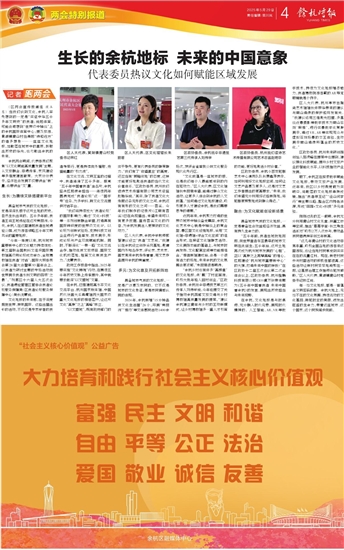 余杭两会期间,代表委员们聚焦“以文化赋能高质量发展”主题,从文旅融合、非遗传承、家风建设等多维度建言献策。大家纷纷表示,经济社会发展不仅要讲含“新”量,也要讲含“文”量。