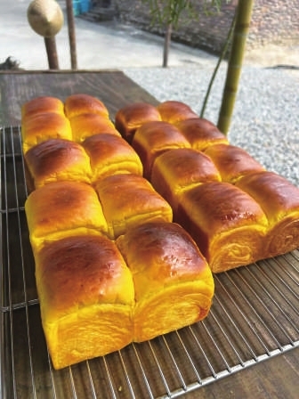 店里的招牌产品有南瓜吐司、米面包、恰巴塔和能量棒等,价格从12元到28元不等。最受欢迎的是南瓜吐司,最多的一天卖了200多个。
